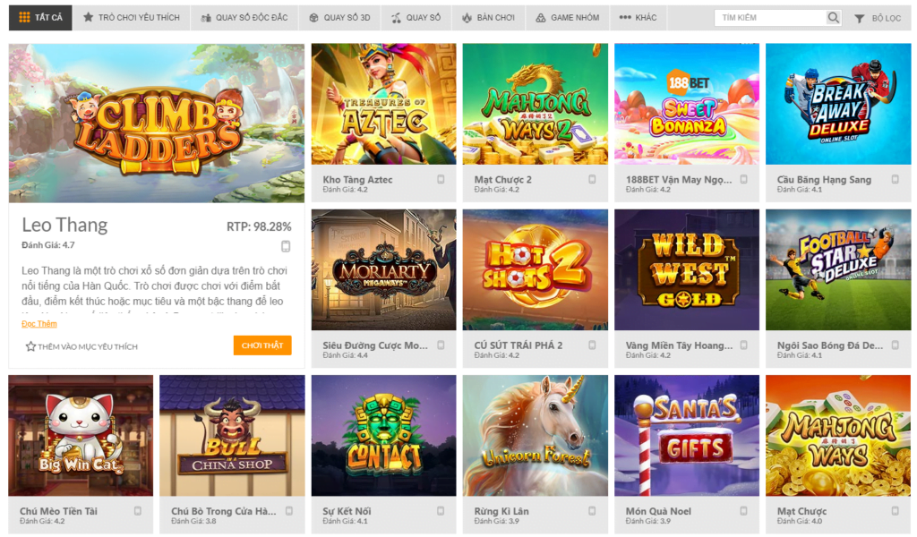 Tham gia vào nền tảng 188bet, người chơi có thể tham gia nhiều trò chơi đánh bạc khác nhau, từ những trò chơi đánh bài truyền thống như bài tiến lên, bài xì dách, bài cào, vân vân cho đến những thể loại đánh bài có xuất xứ quốc tế như bài poker, bài baccarat, keno. 188bet có cung cấp cả trò chơi quay số như trò vòng quay roulette hoặc trò chơi slot machine.