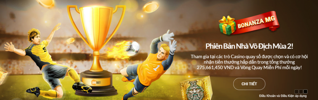 - Bonanza MG – Phiên Bản Nhà Vô Địch Mùa 2! - Tham gia tại các trò Casino quay số được chọn và có cơ hội nhận tiền thưởng hấp dẫn lên đến 13,714,500 VND mỗi tuần và Vòng Quay Miễn Phí mỗi ngày!