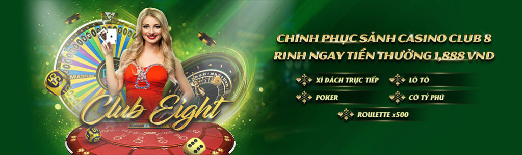 - CHINH PHỤC SẢNH CASINO CLUB 8 RINH NGAY TIỀN THƯỞNG 1,888 VND