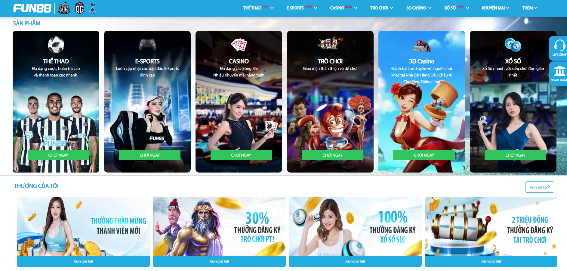 - Đa Dạng Sản Phẩm Thể thao, E-Sports, Sòng Bài Trực Tuyến, Trò Chơi, Xổ Số. Nhiều sản phẩm đa dạng bạn có thể lựa chọn.