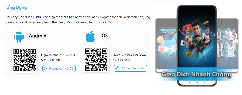 Nắm bắt được những lợi ích trên đối với người chơi cá cược, nền tảng trực tuyến fun88 đã đầu tư nghiên cứu và phát triển ứng dụng di động fun88 Mobile dành riêng cho người dùng của nền tảng này. Bằng việc khởi chạy ứng dụng di động fun88 trên điện thoại thông minh, người dùng có thể bắt đầu cuộc chơi cá cược của mình mà không gặp phải trở ngại nào nhờ vào việc ứng dụng di động này kết nối trực tiếp đến máy chủ của nền tảng fun88 mà không thông qua đường dẫn URL như trên trình duyệt web.